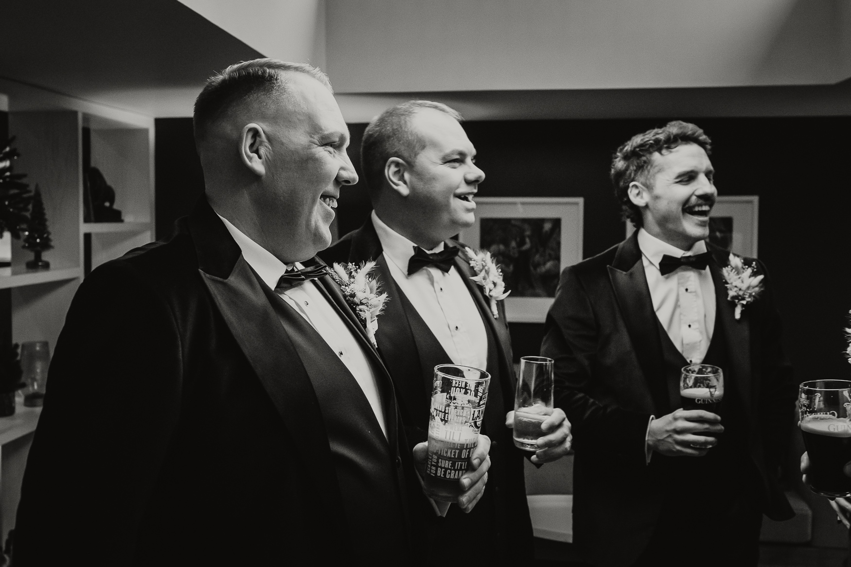 The day kicked off in the bar (always a strong start). The bridal party were already in full form, Guinness flowing — although I was very much on the sober side of the bar for this one! I’d met a few of the gang before, so it instantly felt relaxed and familiar, which always sets the tone for great photos.