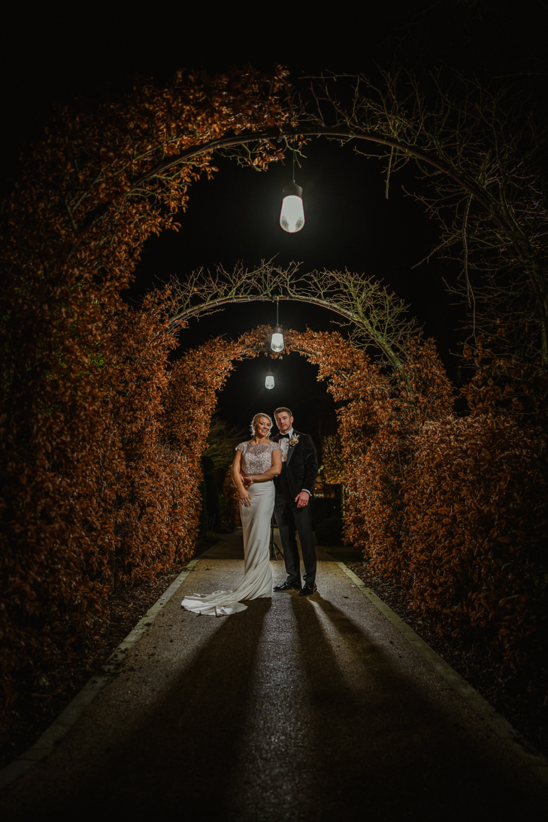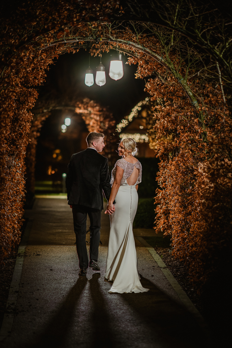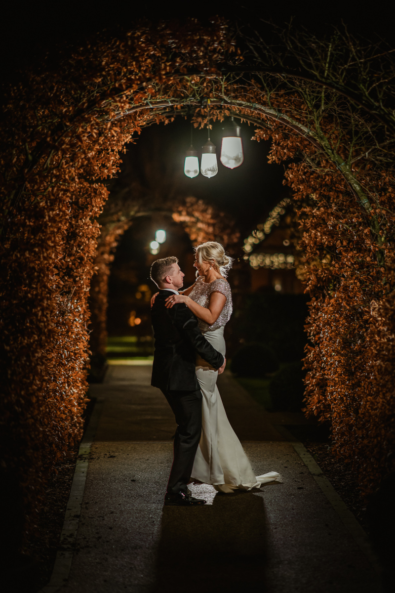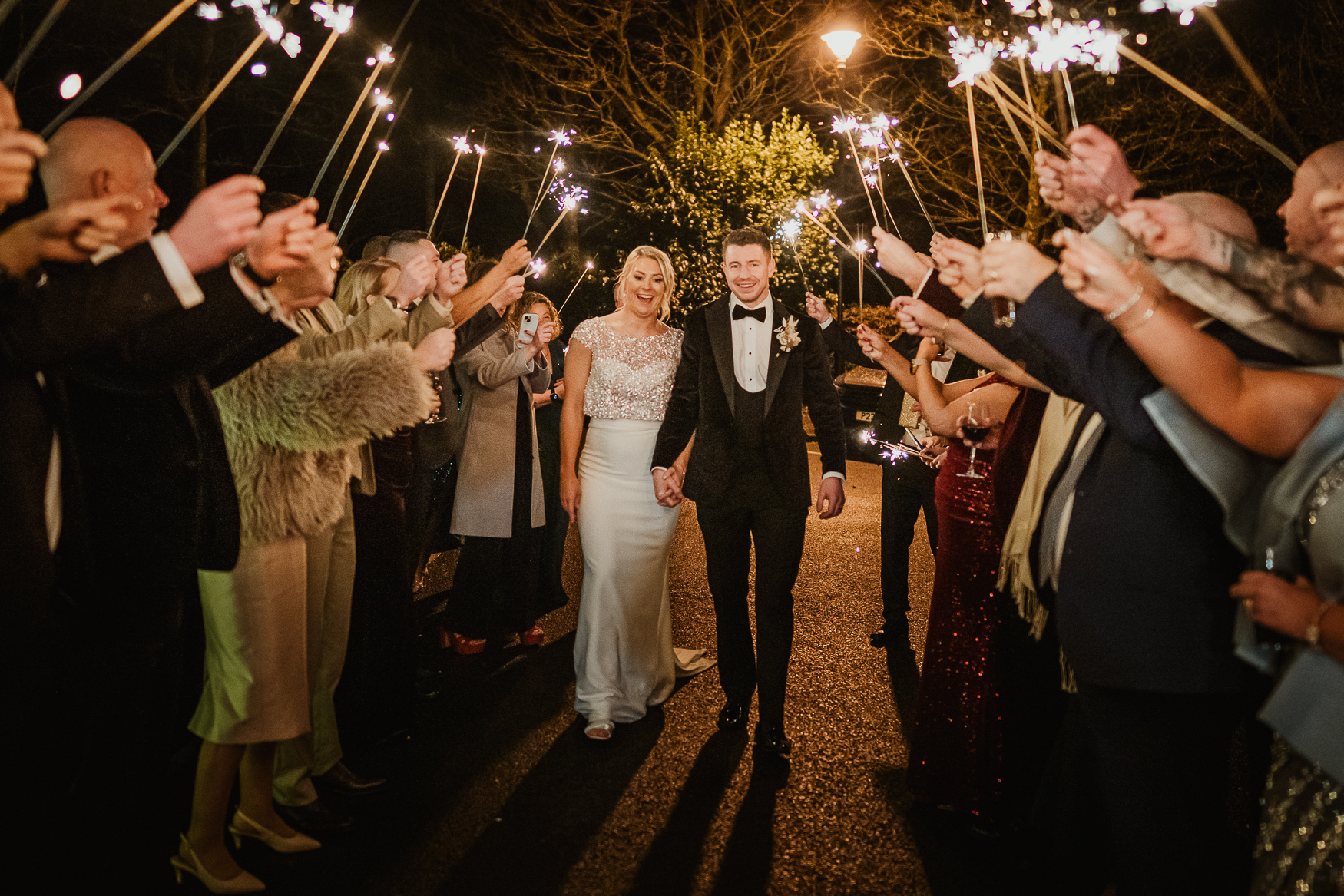 As evening fell, things only got better. Sparklers, winter air, and a quick shoot under the incredible lights around the hotel — the perfect way to finish. That soft glow you get at Clandeboye at night is something special, and it really does mean you never want to leave the venue for photos.