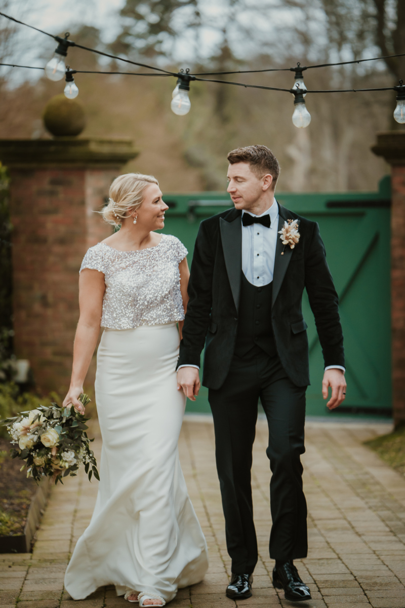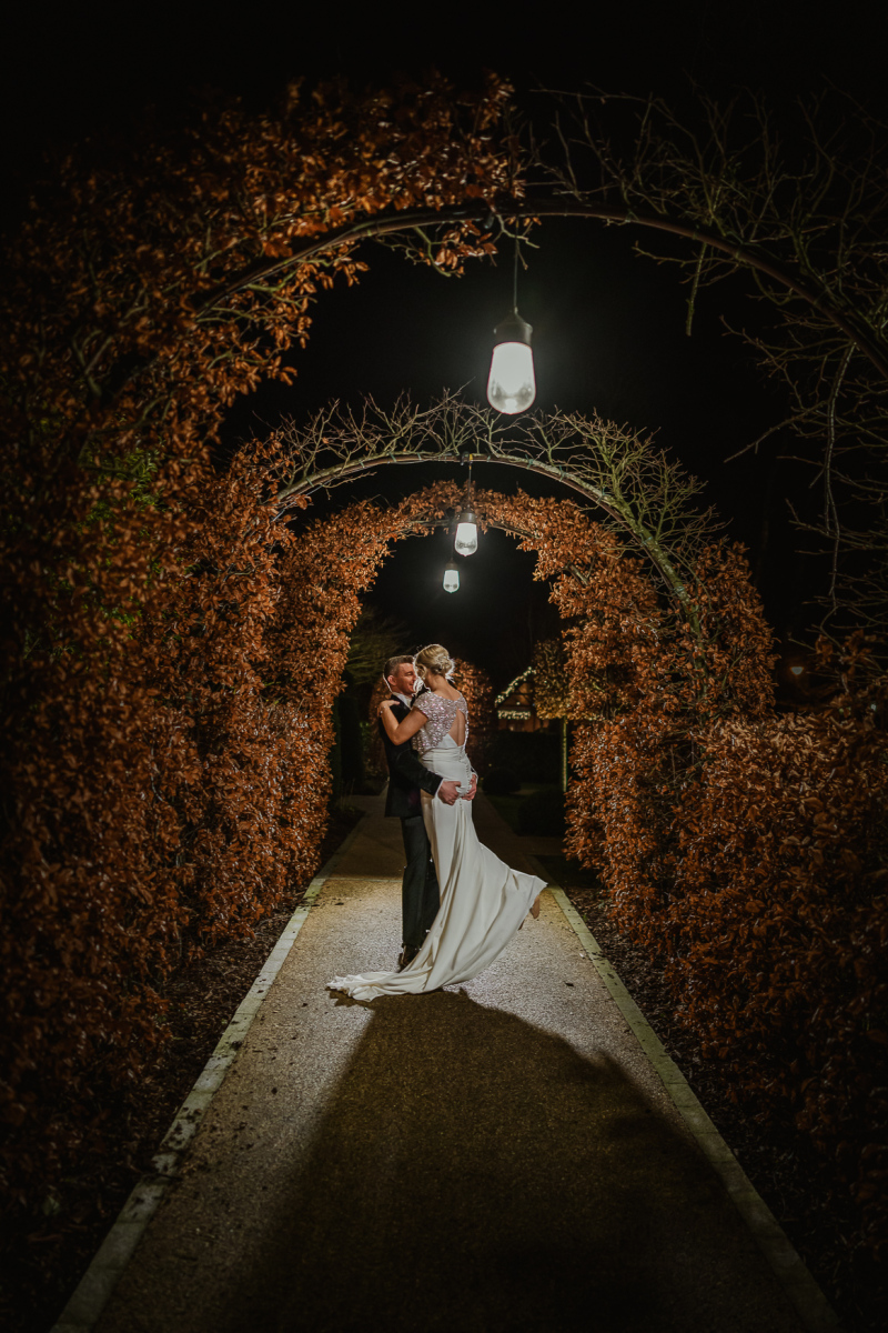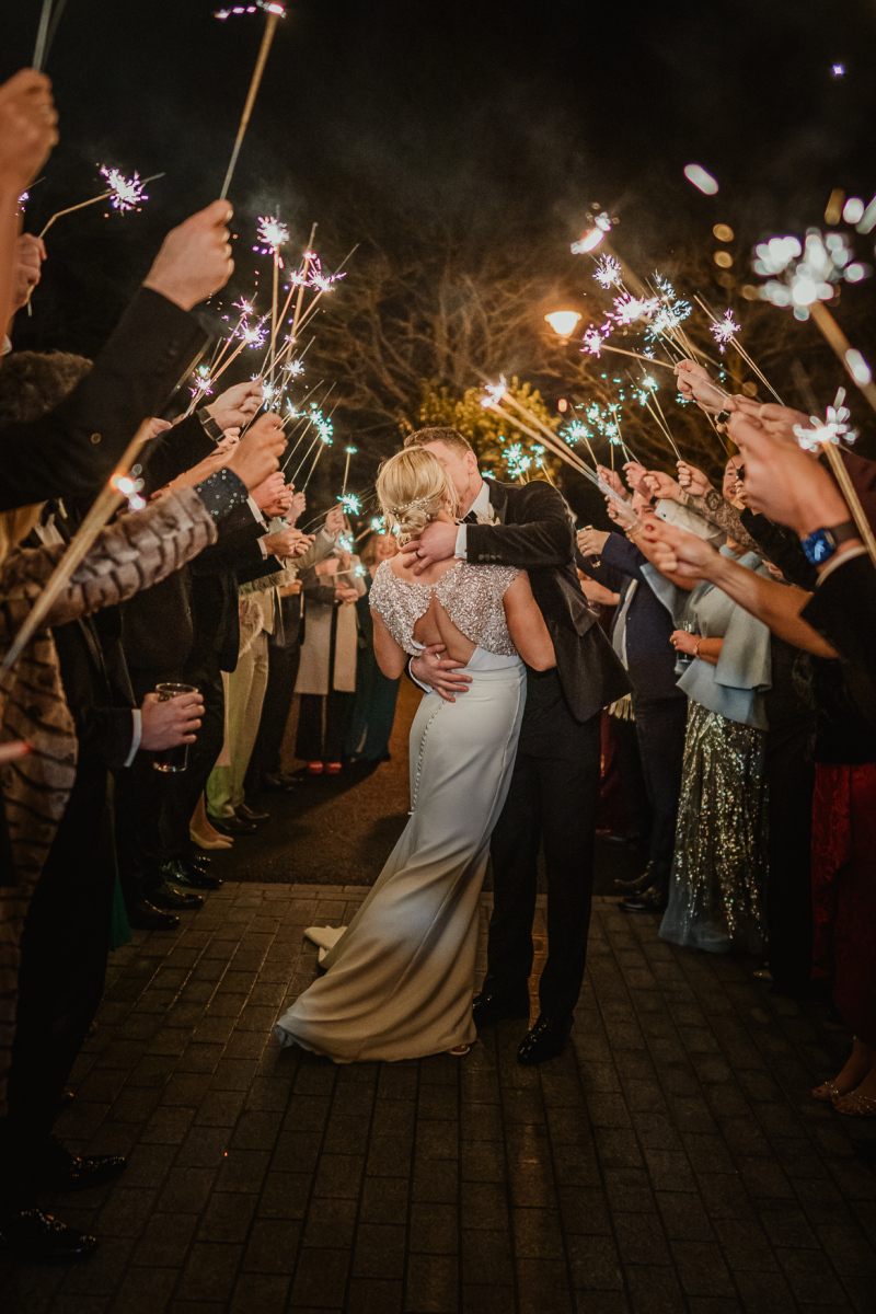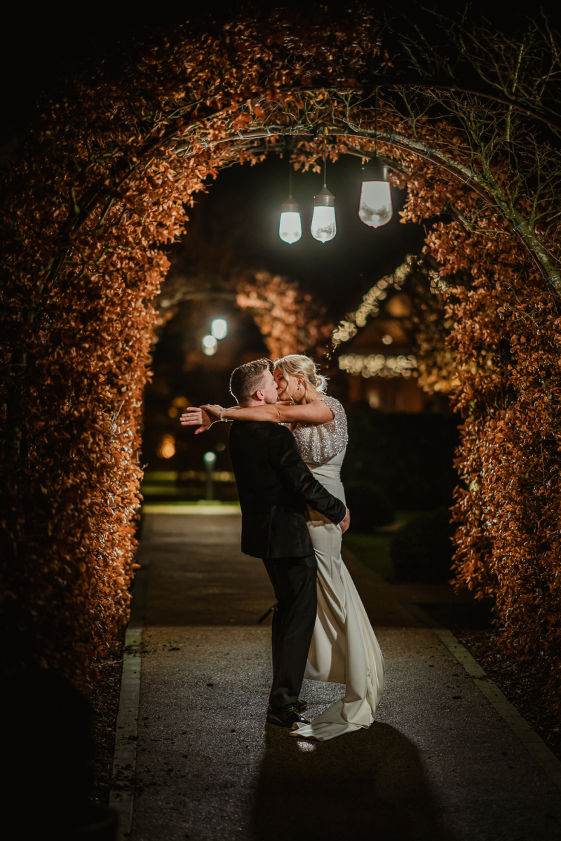 As evening fell, things only got better. Sparklers, winter air, and a quick shoot under the incredible lights around the hotel — the perfect way to finish. That soft glow you get at Clandeboye at night is something special, and it really does mean you never want to leave the venue for photos.