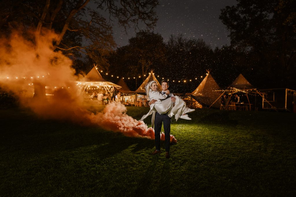 There’s nothing like watching guests walk through the forest and see the tipis for the first time — their faces say everything. And at night, the transformation is extraordinary: warm lights, fire pits, glowing canvas and the soft hum of celebration beneath the trees. It’s a dream to photograph and an even bigger dream to experience.